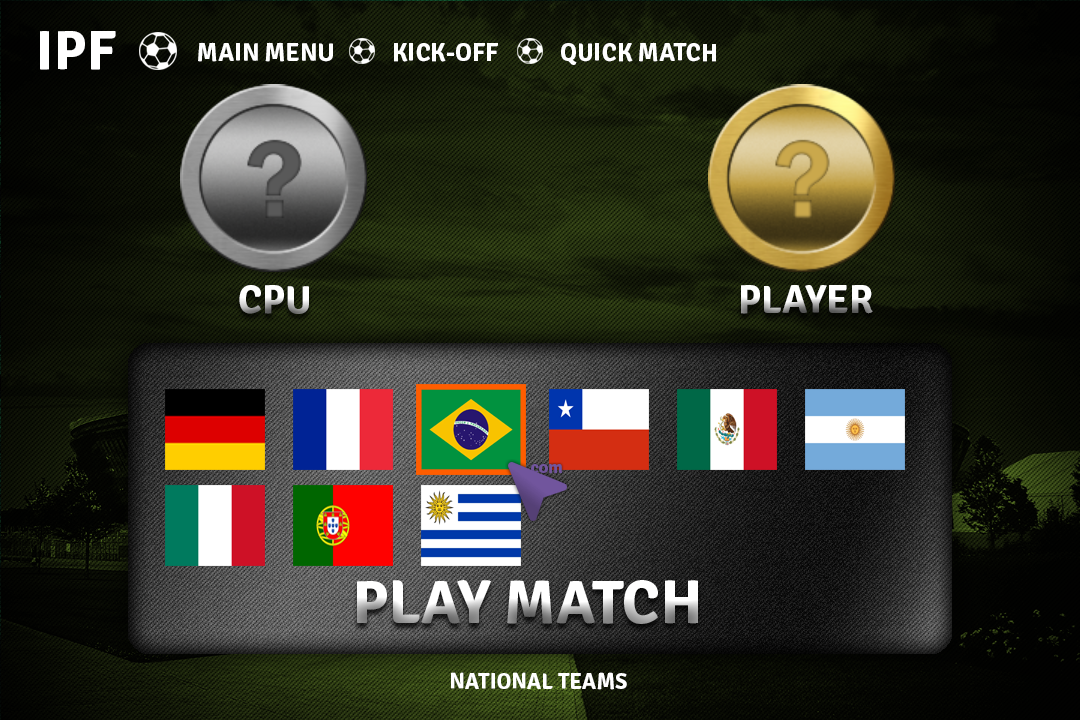 The classic Pong style game, goes football now, International Pong Football, is the unique pongball game. Actually in developement, Alpha release.