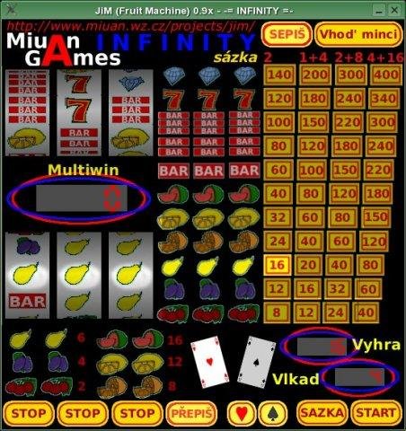 JiM is simulator Fruit-Machine or simulator One-Bandit-Machine. He can change him "face", help Skins. Skin define all cilinder, buttons, displays, lights,.. and theirs bitmaps, xy-coordination and theirs configurations.