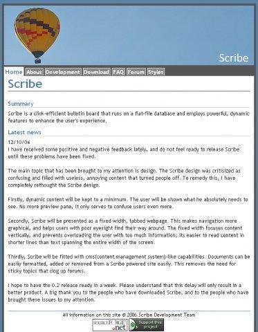 Scribe is a click-efficient forum that runs on a flat-file database and employs powerful, dynamic features to enhance the user's experience.