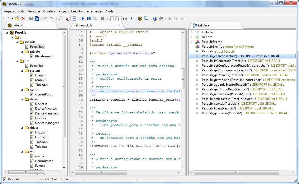 - Biblioteca para Java, Dephi e C