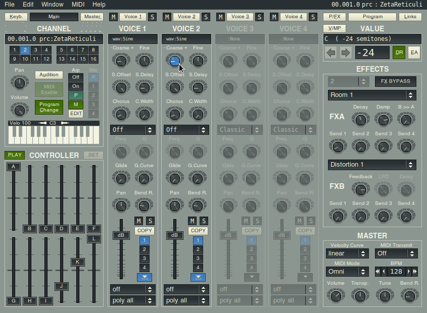 - Controls for (almost) every parameter of the synthesizer