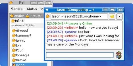 Psi is cross-platform powerful XMPP client designed for experienced users. There are builds available for MS Windows, GNU/Linux and macOS.