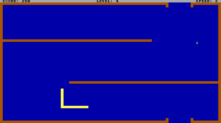 Zmiy is a snake game designed for DOS and 8086 processors. It's very small and pretty fast. Zmiy simulates graphics using text mode.