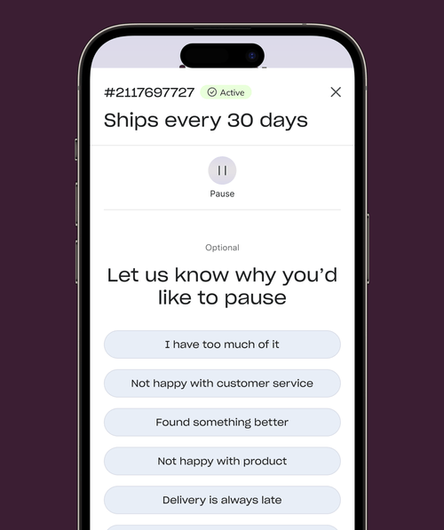 Reduce churn with special offers or marketing actions tailored to the specific cancellation or pause reason given by a customer.