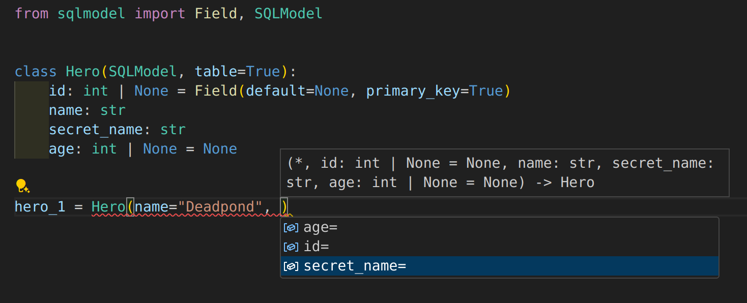 SQLModel was carefully designed to give you the best developer experience and editor support, even after selecting data from the database: