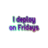 'I deploy on Fridays' holographic stickers