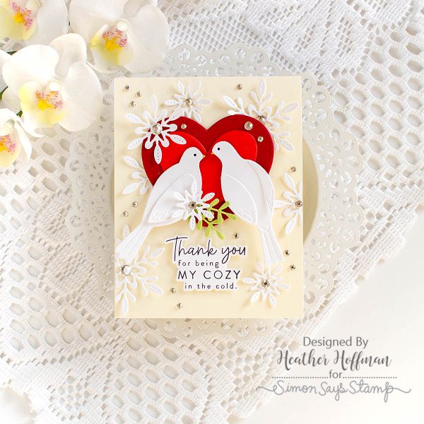 This lovey-dovey card was created by Heather H. using dies for a frosty Valentine design. Two doves are sitting on layered hearts with snowflakes falling around with the perfect sweet stamped sentiment. There’s lots of gems for some sparkle too. … Read More ...