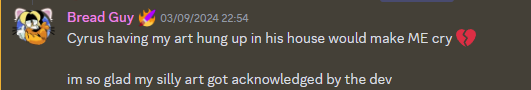 I can't express how happy this makes me that my dumb little game got fan art. Cyrus would have this professionally framed and probably cry over it. Thank you.